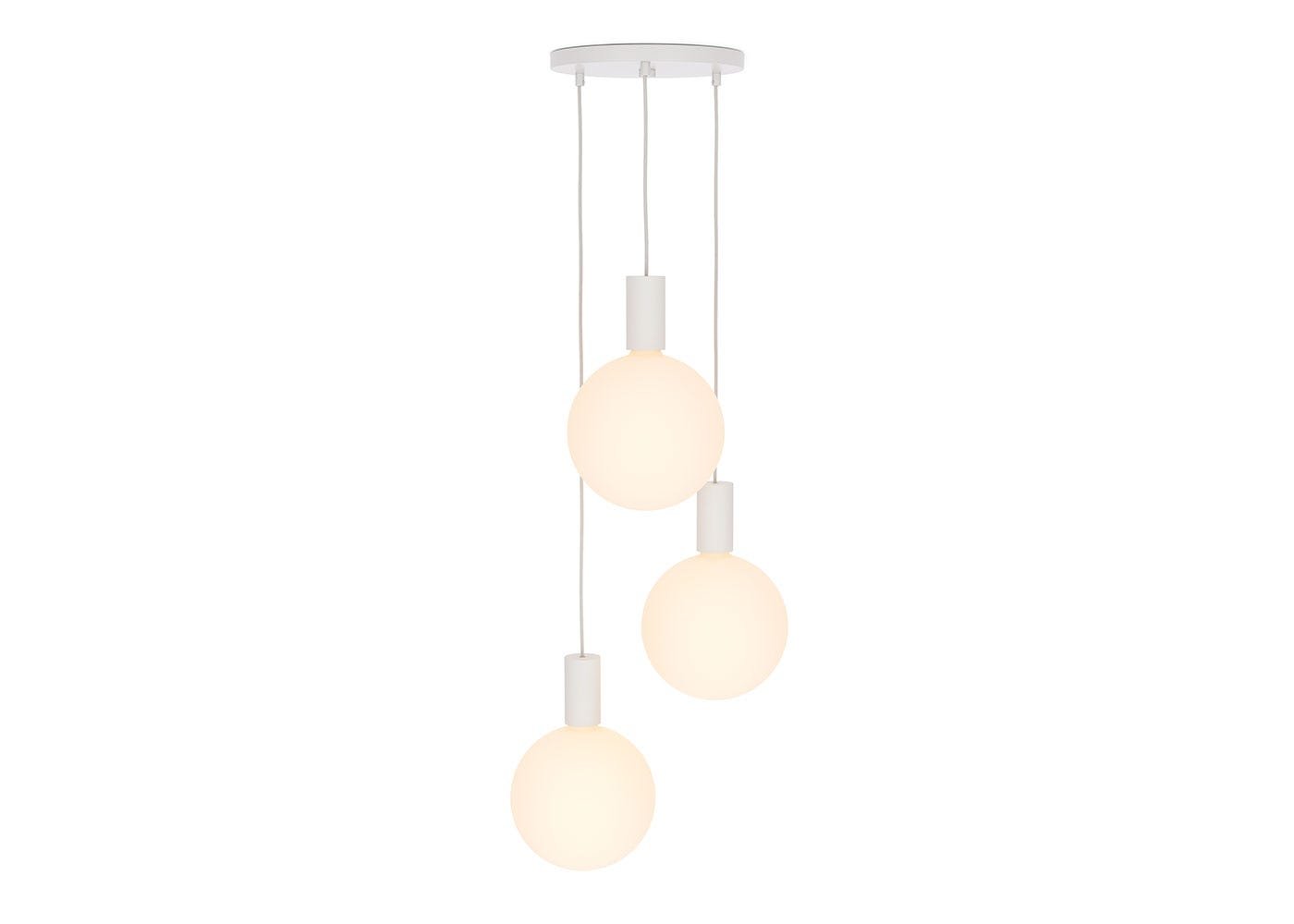 An extension of the Alumina Lamp series these pendants celebrate the theories and concepts of Bauhaus, drawing particular inspiration from the White City in Tel Aviv. The pendants reference closely the classic curved design and white surface finish of the architecture. Designed to showcase the form of the Sphere V (XL) bulb and its in-built Dim to Warm technology, the series returns to the simple, purposeful forms of Bauhaus. The lightweight cast aluminium body is ideal for creating the balanced form suitable for powder coating. Complimented by the grey and white speckled braided cord, the colourway brings a lightness to the suspended floating orbs.