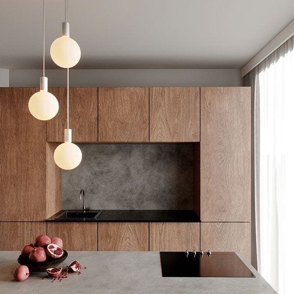 Designed with a concealed neck, the bulb sits almost flush in the pendant.