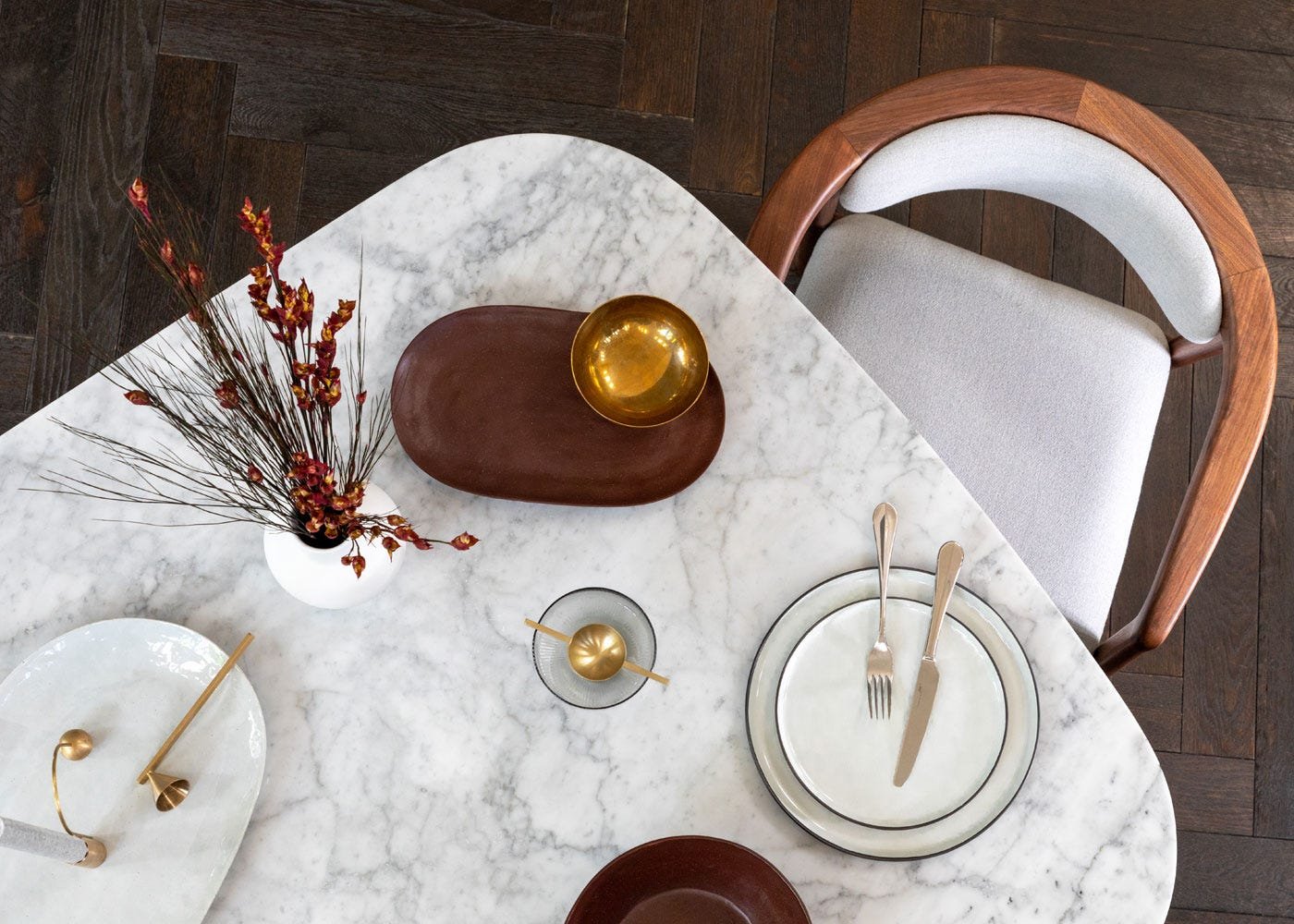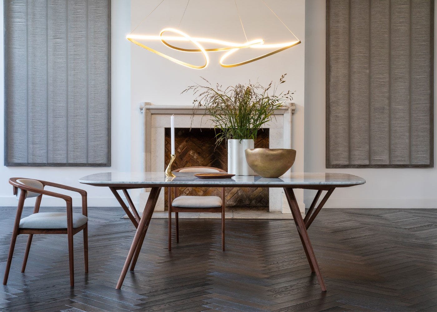 A new addition to the exclusive Heal’s collection, the walnut Anais Dining Table lends a sense of refinement and luxury to mealtimes. Its solid walnut base boasts a unique shape that’s expertly joined by skilled craftspeople so any screws are cleverly concealed. A subtly curved solid marble table top rests on top of the base, appearing thin and delicate whilst remaining incredibly durable. The white marble features grey veins running through it for a completely unique finish.