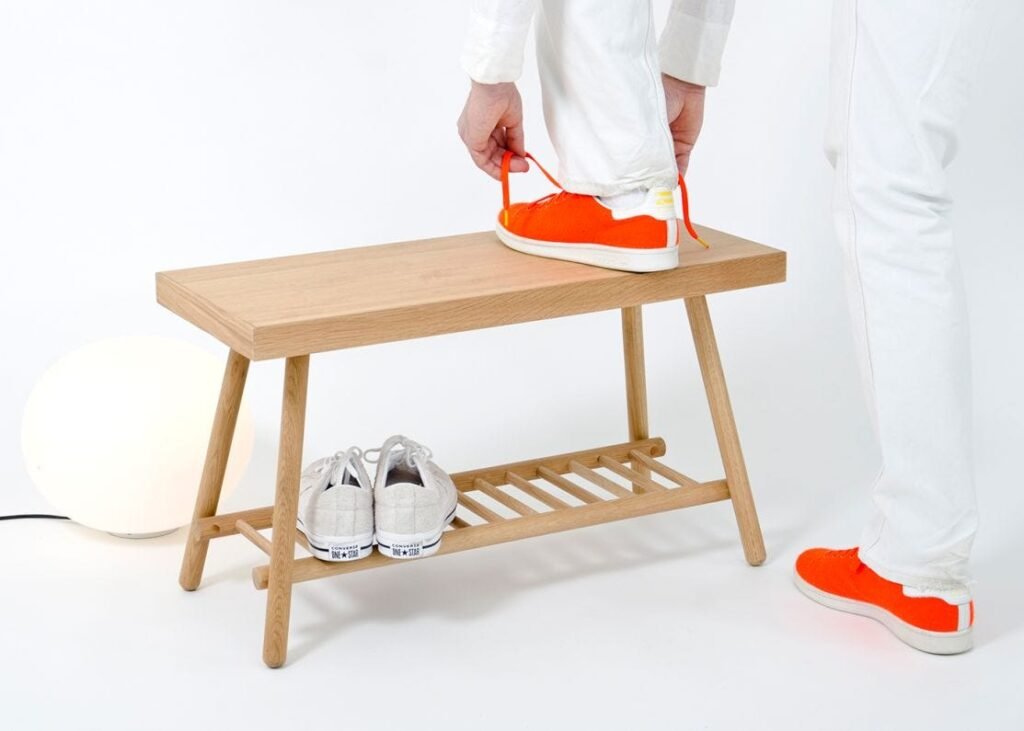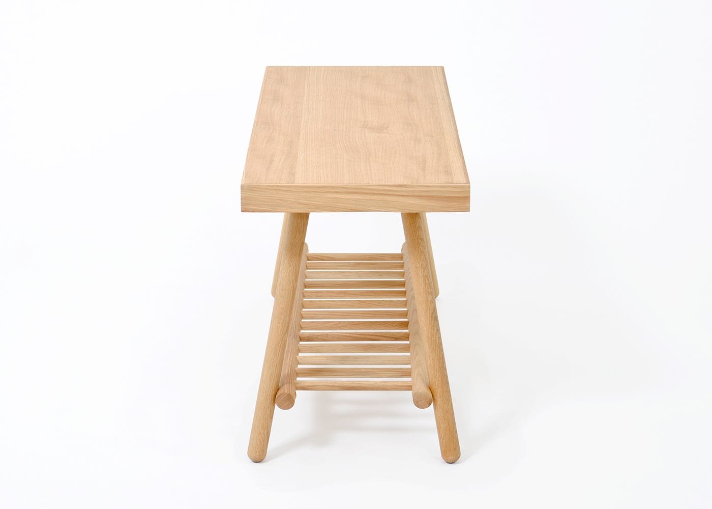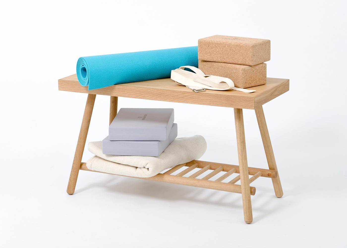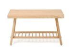 Bench 75 in a hallway is a place to take off shoes, put on boots, where outdoors and indoors meet. The storage shelf stores up to three pairs of shoes comfortably and there’s room underneath for more. Alternatively use it at the end of a bed and keep blankets and pillows on the storage shelf, or as a side table storing magazines and books below. Where space is limited this compact design slots in easily.