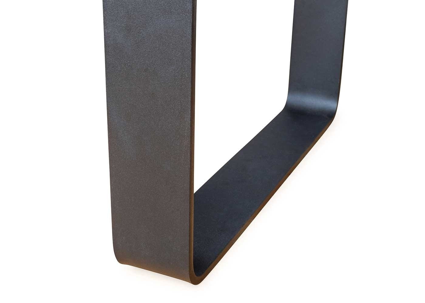 The tables wide metal leg creates a modern industrial look