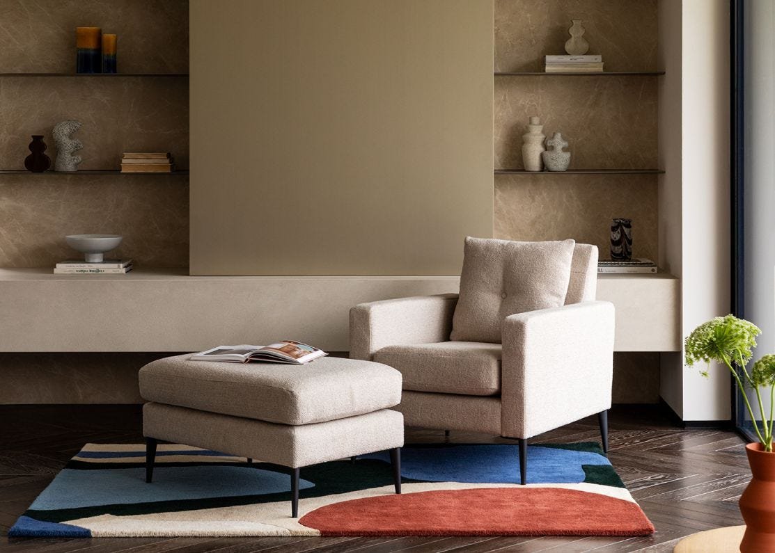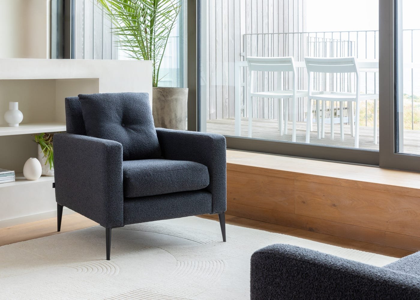 The Brunel Armchair perfectly balances industrial style with mid-century charm. Crafted in Britain, it features a durable hardwood frame, sleek aluminium feet, and contemporary button cushion upholstery. The foam seat and fibre-filled back cushions deliver superior comfort, making it a sophisticated choice for stylish and practical living.