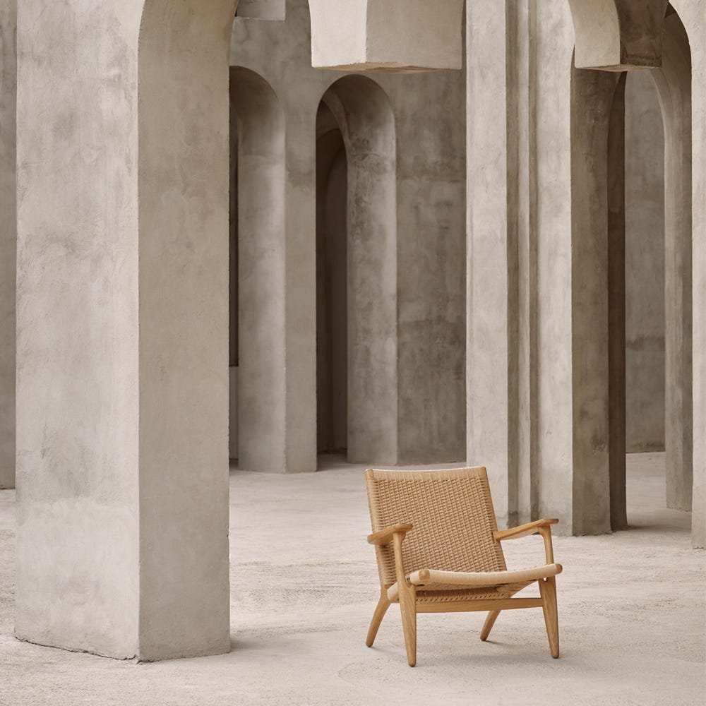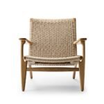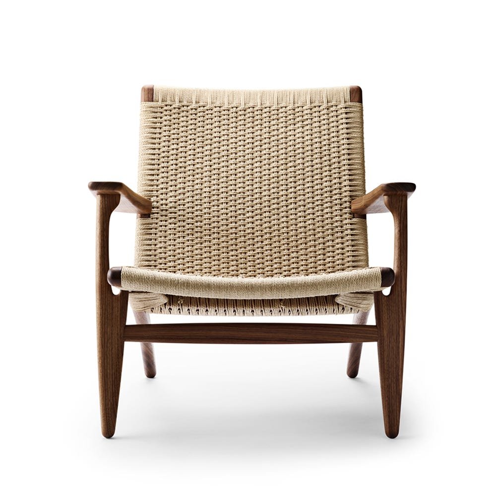 An iconic Hans J. Wegner design, the CH25 Armchair is clean and simple in its distinctive shape. Originally constructed in 1950, the chair was considered revolutionary at the time. The woven paper cord used on the backrest and seat, a replacement for seagrass developed during World War II, had never been used in furniture design before. Nevertheless, the look of the material and it’s non-stretching and optimal durability make this piece fascinating from all angles. Typically, it takes a skilled craftsman around ten hours and approximately 400 metres of paper cord to complete one seat and backrest by hand. Using a particular technique that resembles weaving, the expert craftsmanship is visible on both sides of the low reclining backrest. Crafted with attention, care and delicacy, it’s the perfect chair for rest and relaxation.