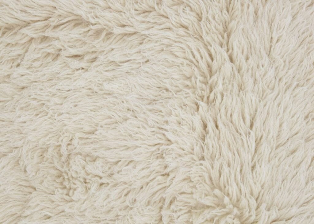 Hand woven ‘flokati’ rug in natural-coloured 100 % pure virgin wool with a synthetic weft.