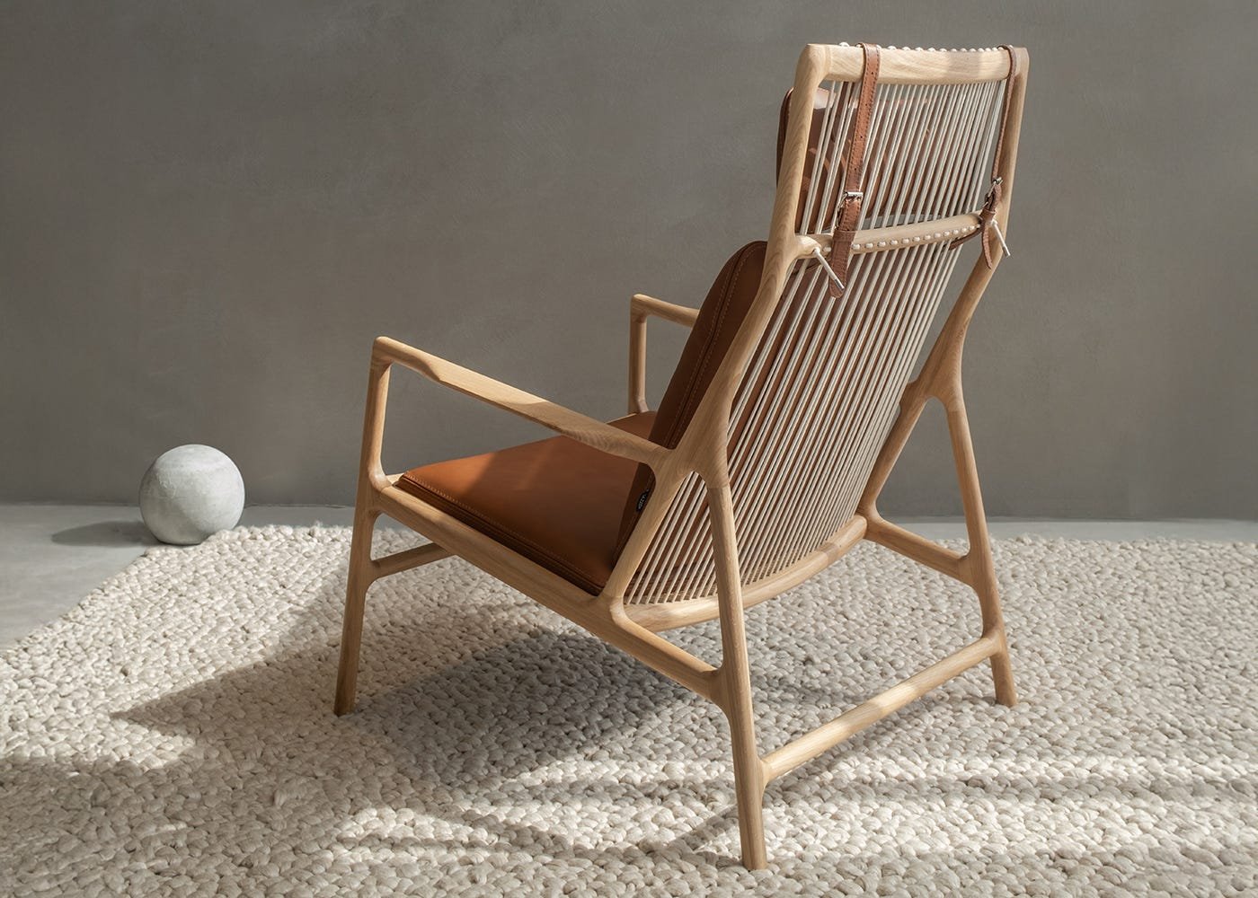 The Dedo Lounge Chair, designed by Salih Teskeredžić, balances sculptural elegance with artisanal craftsmanship. Handcrafted from solid oiled oak and upholstered in rich Dedar leather whisky, it offers both durability and refined comfort. Its name, taken from the Bosnian word for “grandfather,” reflects its essence: a place of wisdom, comfort, and quiet reflection. Each chair embodies a timeless connection between tradition and modern design, making it a standout piece for any interior.