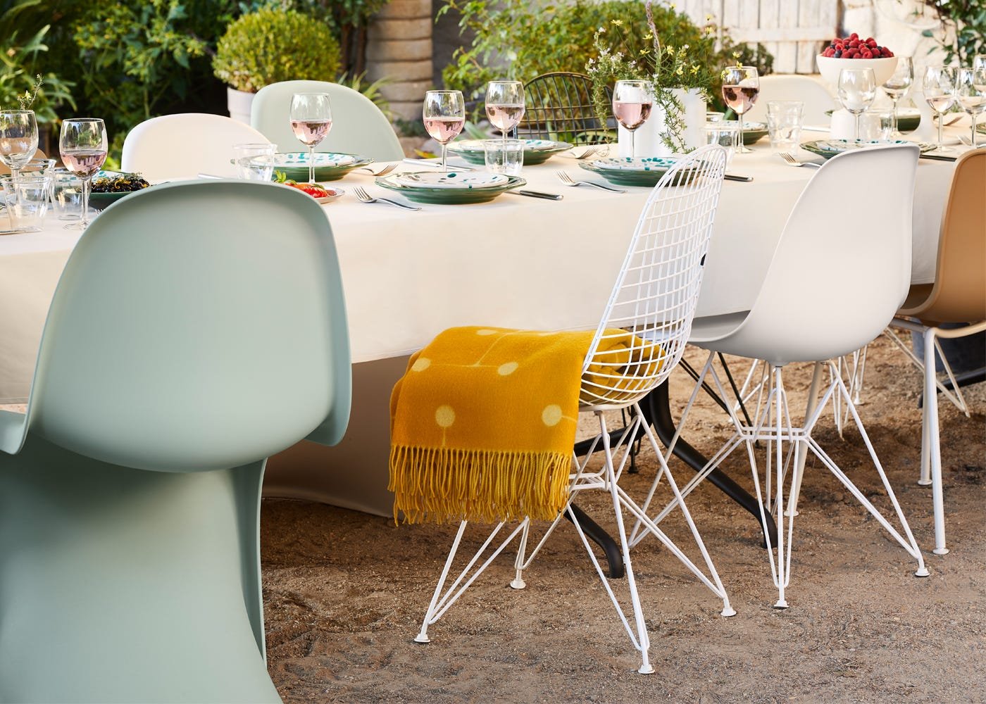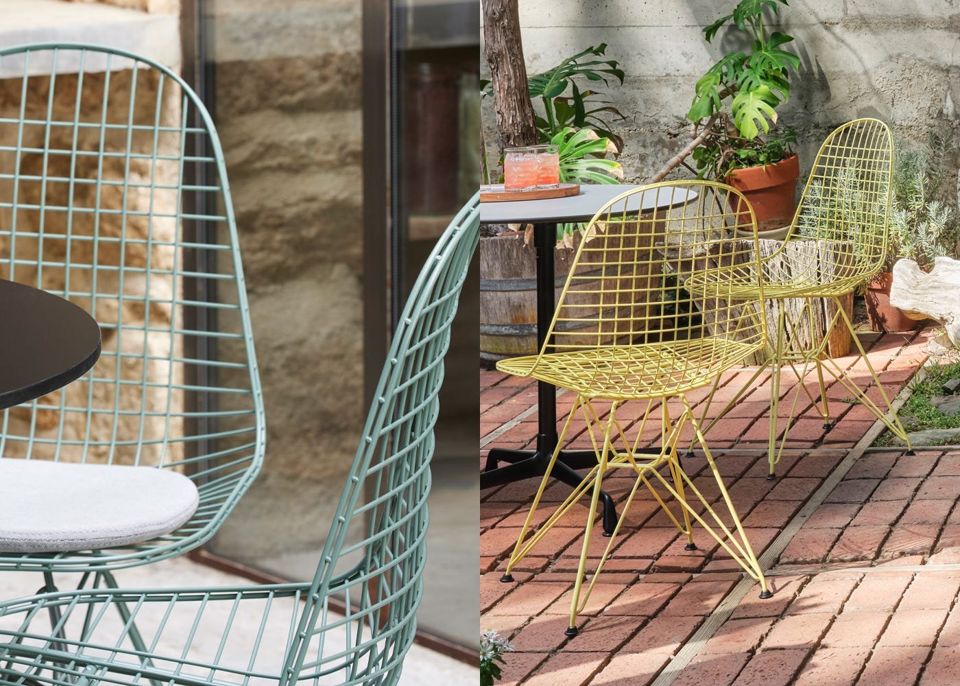 Designed by Charles and Ray Eames out of welded steel wire, the Wire Chair is a variation on the theme of the organically shaped one-piece seat shell, pairing transparent lightness with technological sophistication. Lending additional functionality and transparency to the design, its iconic plastic shell has been reimagined in wire before being positioned on the legendary ‘Eiffel Tower’ base.