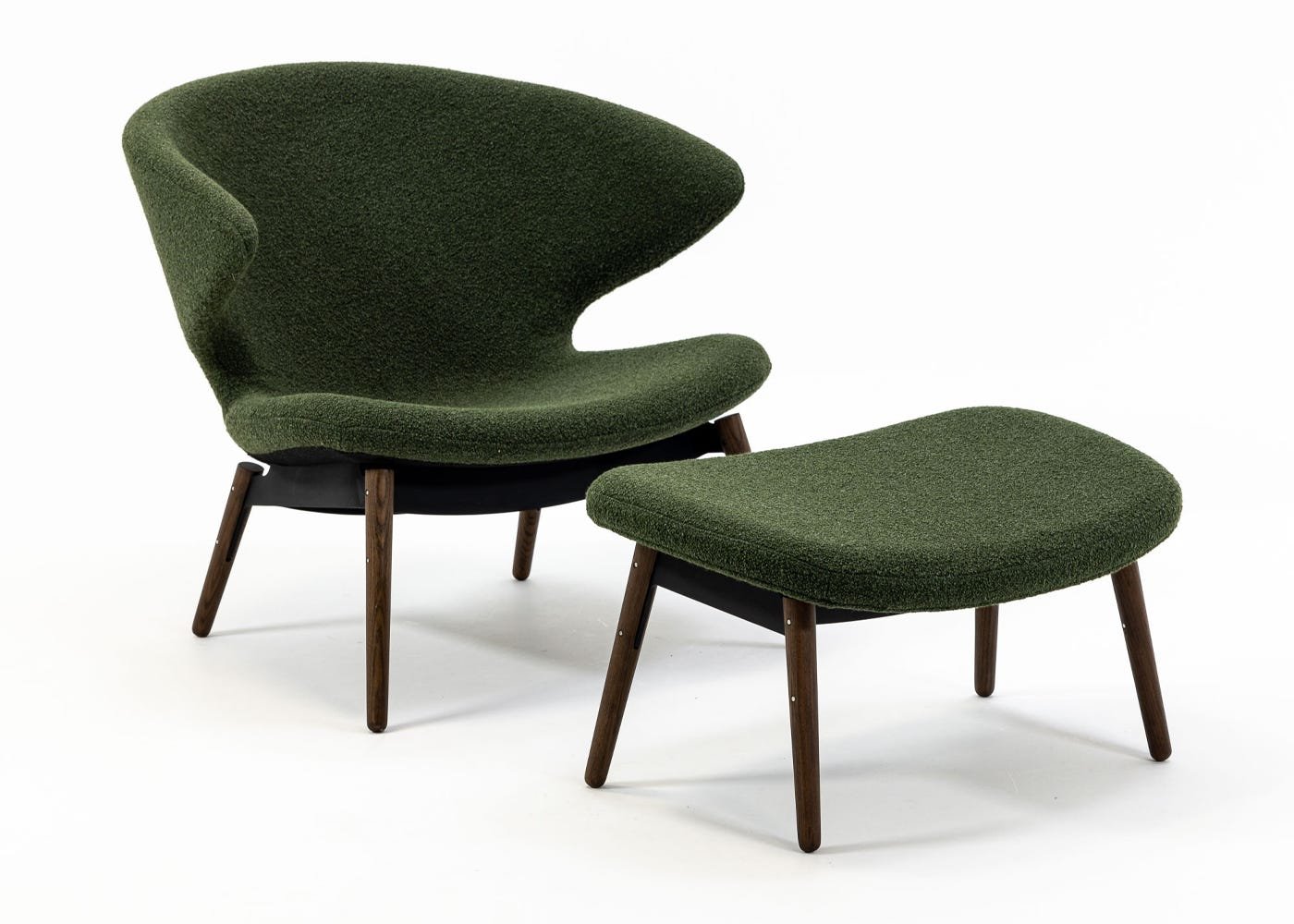 The chair features distinctive ‘wings’ that reach out on either side, providing comfort and support.