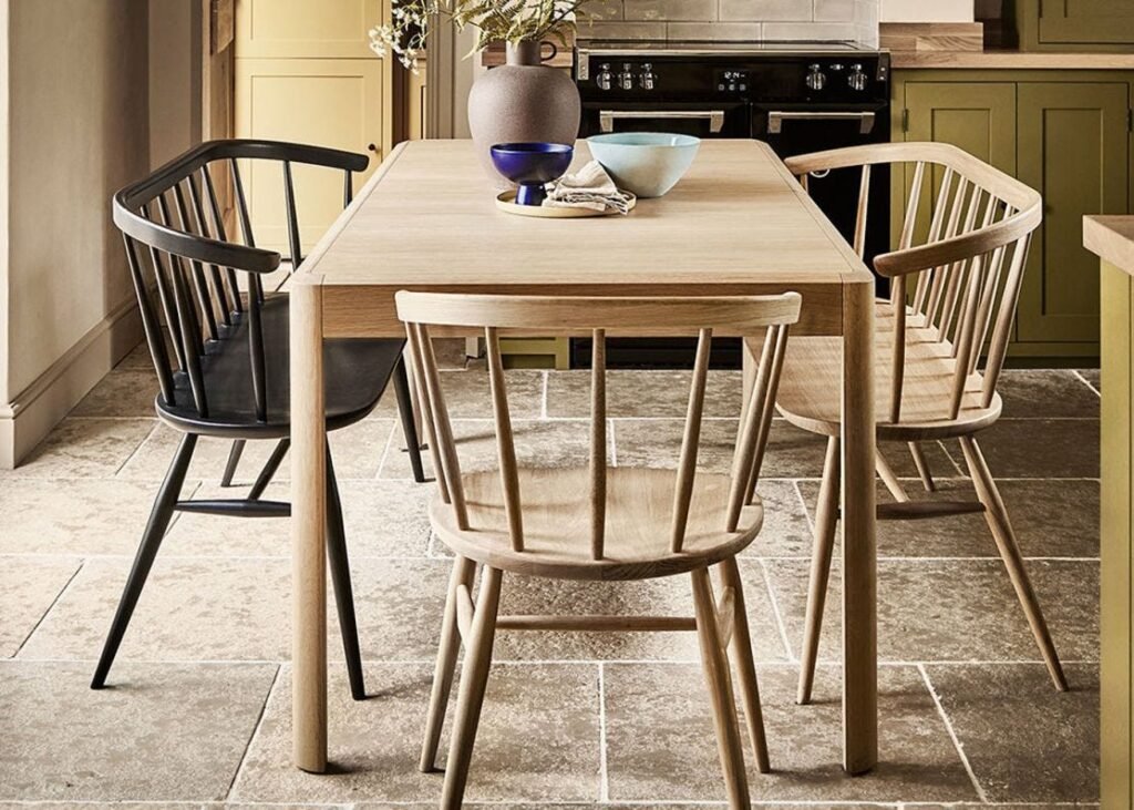 Traditional spindle backrest is formed from a row of individual ash poles, each turned to create a soft feel