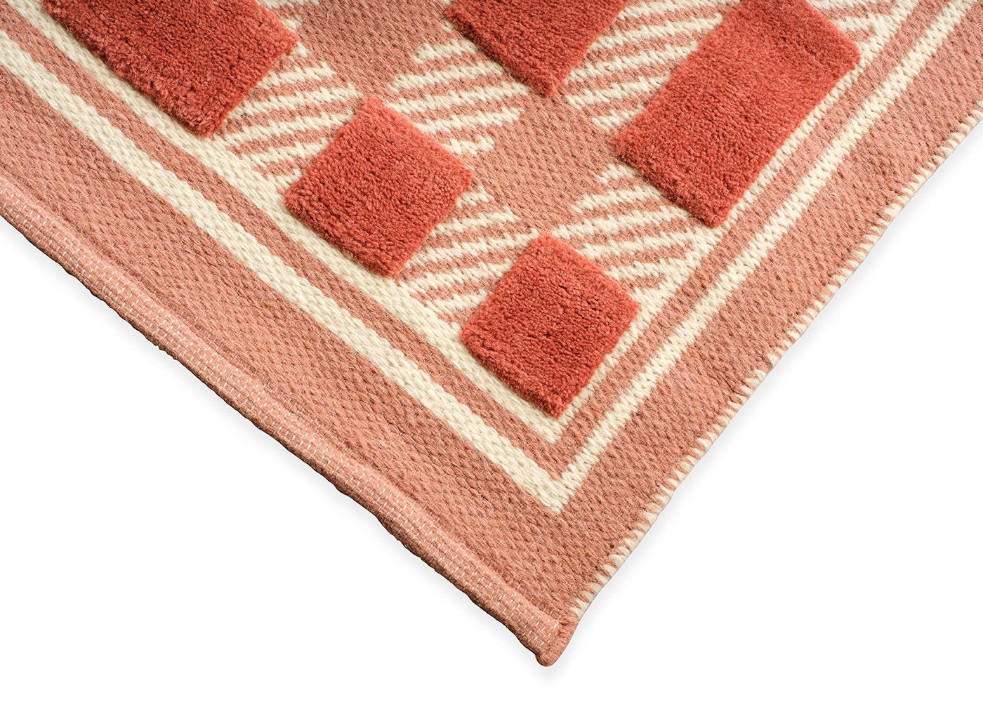 The Lattice Rug in coral combines traditional craftsmanship with a modern palette. Woven using a combination of techniques, a jacquard base is meticulously crafted before a contrasting pile is over-tufted to create a striking three-dimensional check pattern. Made from 100% wool, the rug is luxuriously soft underfoot yet durable enough for everyday living. The warm coral hue adds a vibrant yet elegant touch, making it a statement piece in any room.