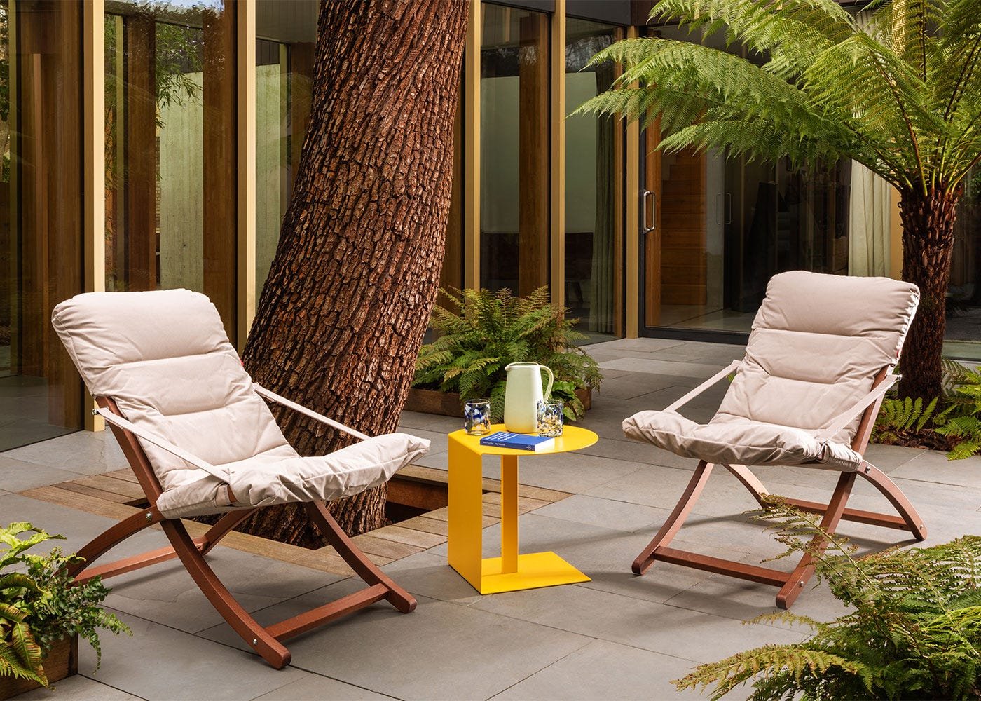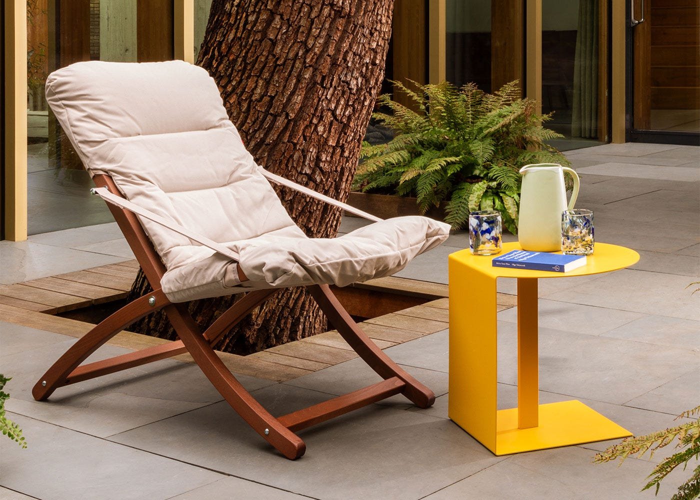 The two-position adjustable design and upholstered cushion provide tailored support for effortless relaxation.