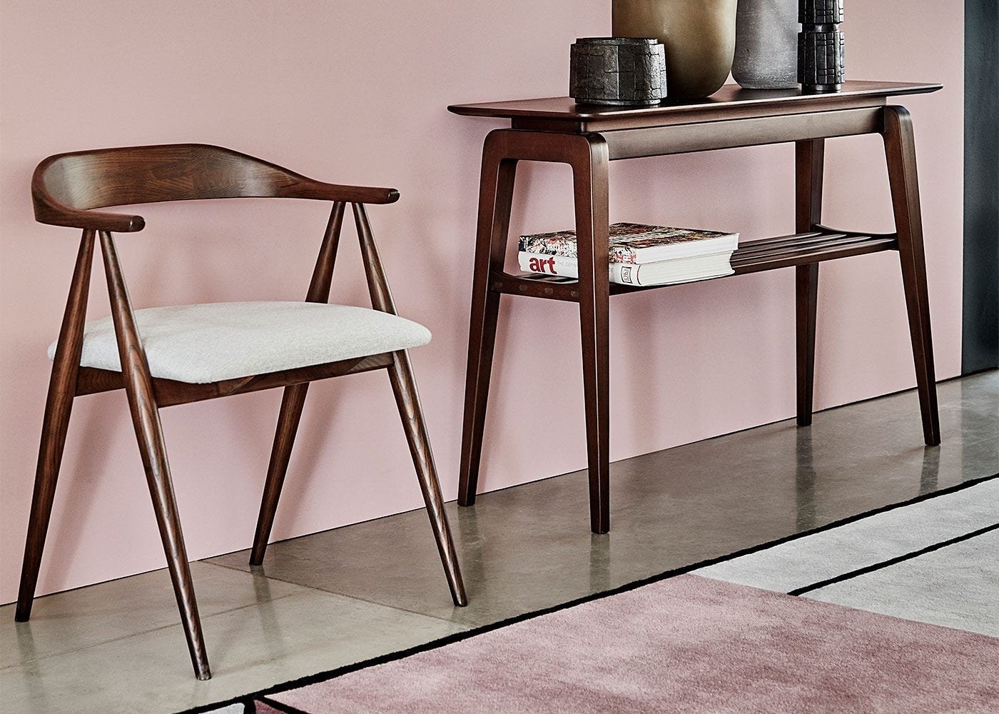 Distinctive Nordic design details, from its slim tapered legs to a soft curved backrest.