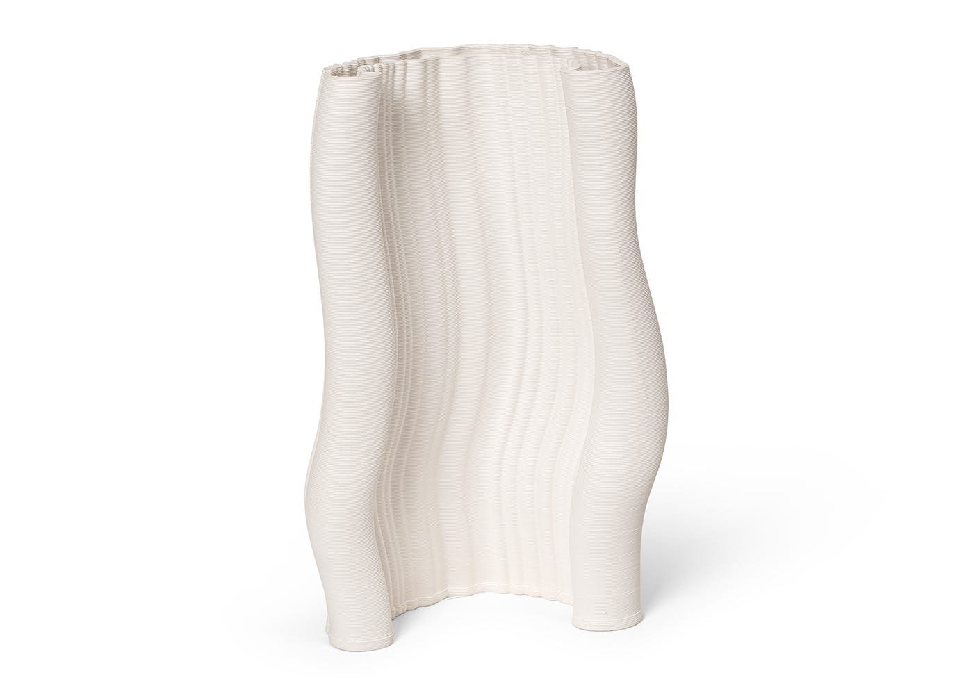 The Moiré Vase is inspired by the graphic effect that occurs when the organic and geometrical clash. The vase has been created through a process of 3D printing clay, resulting in thin layers that have gradually formed a subtle pattern across the body of the vase, revealing its digital origins.