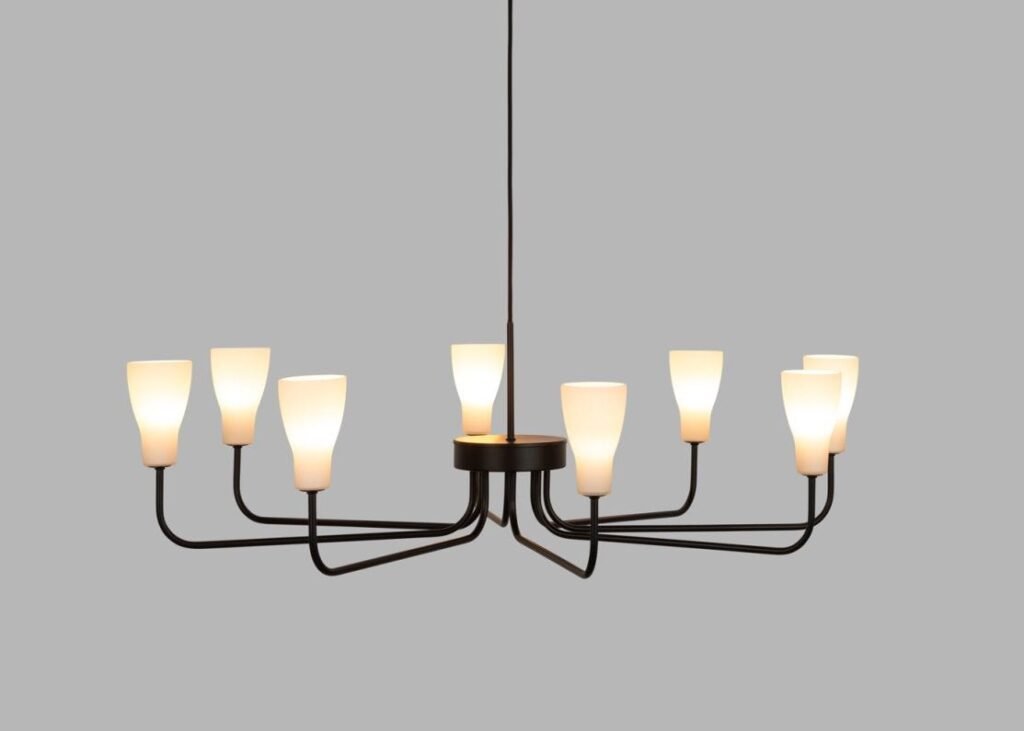 Inspired by a sophisticated chandelier in a stunning Copenhagen mansion, the Ophelia 8 Arm Chandelier Pendant Light offers a perfect blend of contemporary design and timeless elegance. Available in brushed brass or matte black, each piece features matching cables and eight opal glass shades that emit a soft, inviting light. This striking chandelier not only illuminates your space but also serves as a beautiful focal point in any room.