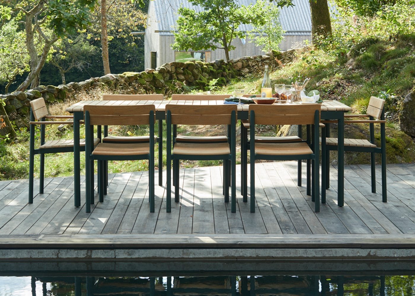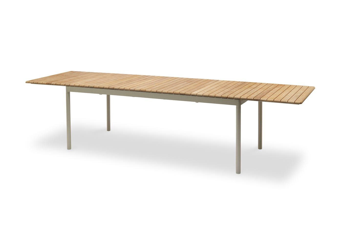 Pelagus Table is created for sociability and comfort. The teak tabletop has rounded edges where it meets the powder-coated aluminium. Comfortably seating 6 or 8 people, it can be extended for up to 4 more, with the addition of one or two extension plates (sold separately).