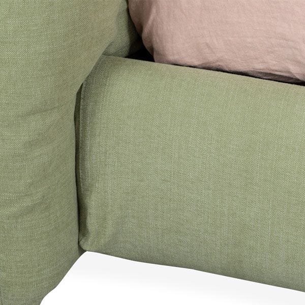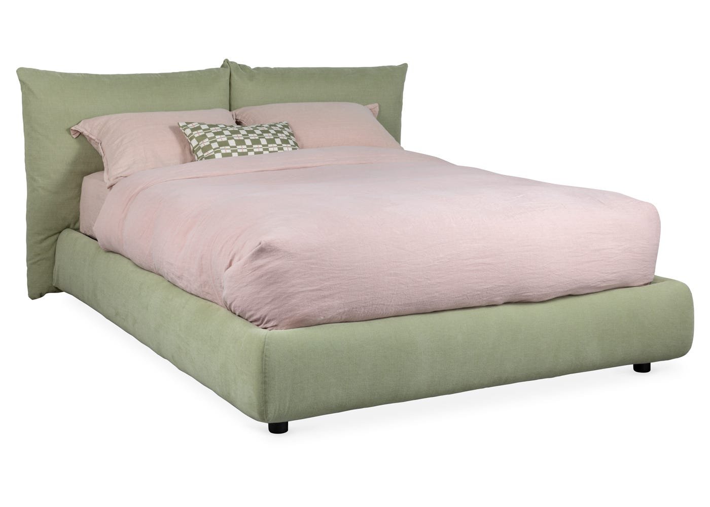 Small, unobtrusive legs maintain the bed frame’s soft silhouette.