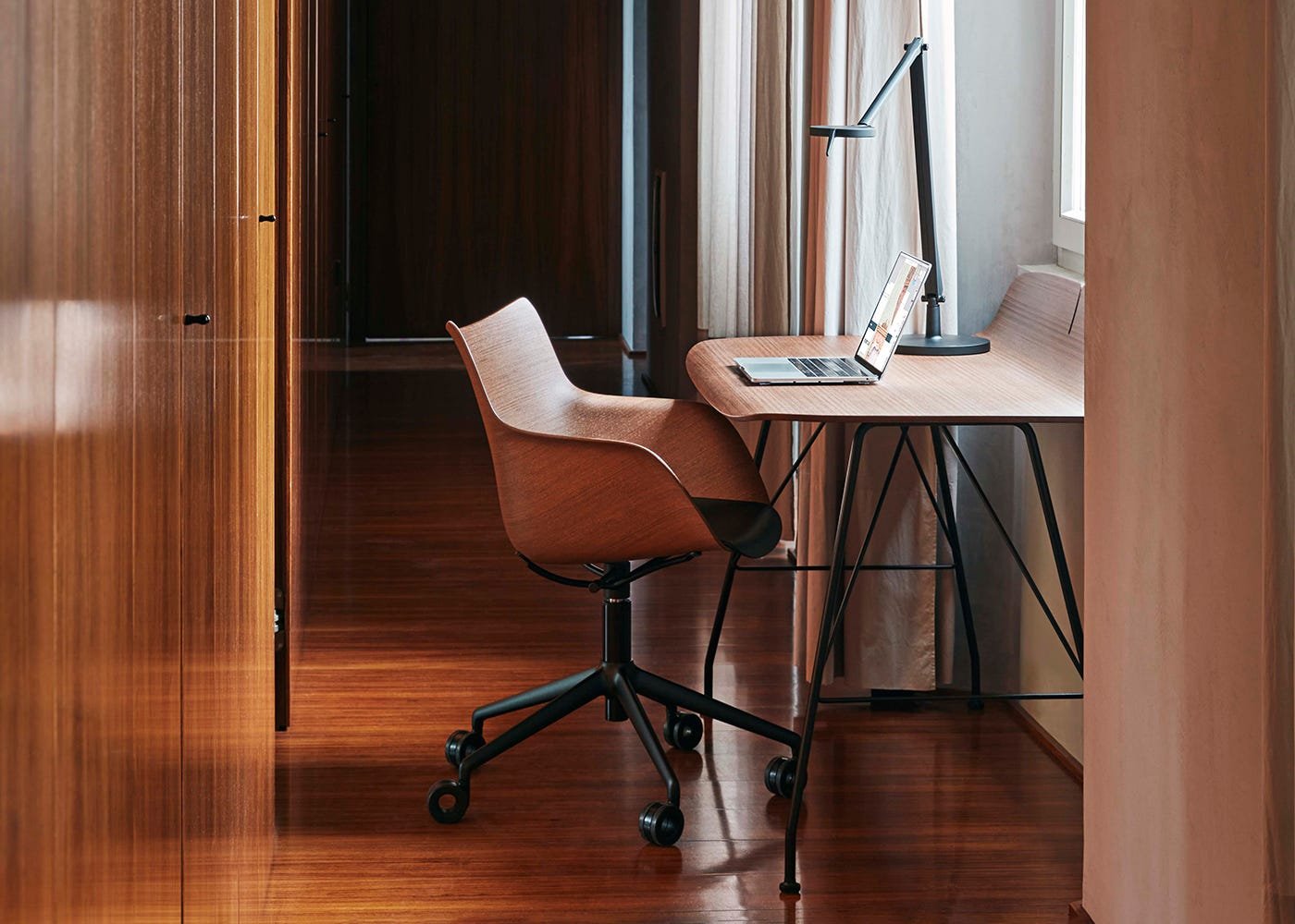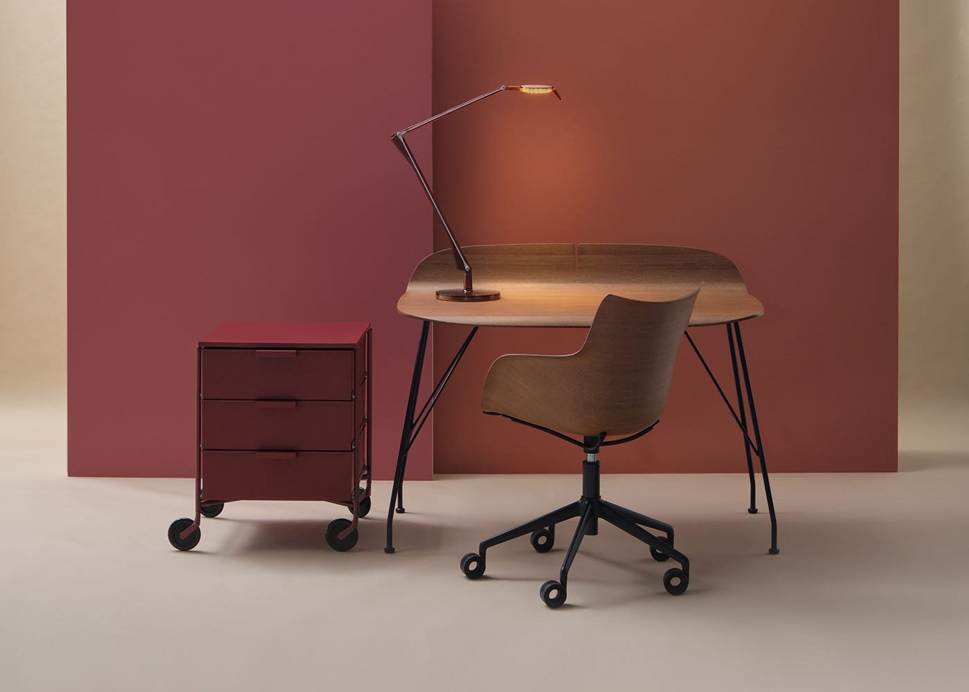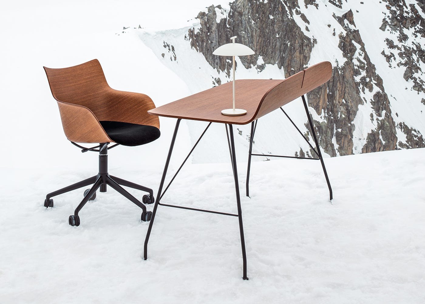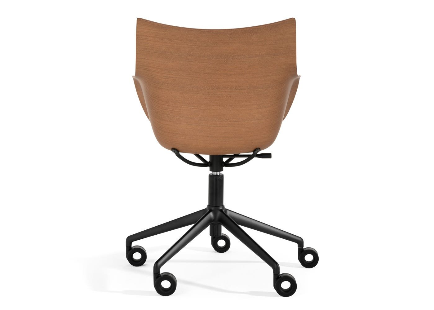 Carved using Smart Wood technology, sustainability and exquisite design is what defines this armchair by Kartell. Ushered in by the Italian designer, this Q/Wood Office Chair is part of the “Kartell Loves the Planet” project. Using patented Smart Wood technology, this stunning piece is almost entirely crafted from a fine layer of dark wood. Flowing in a single form with pronounced curves, this chair is supported by a 5 star steel base.