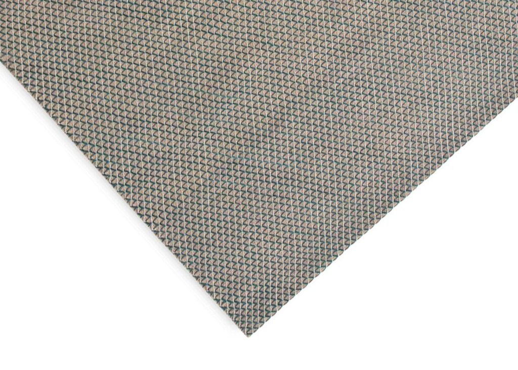 The freshness of the permeable geometry of the second layer of wool brings a contemporary look to an eminently classical design.