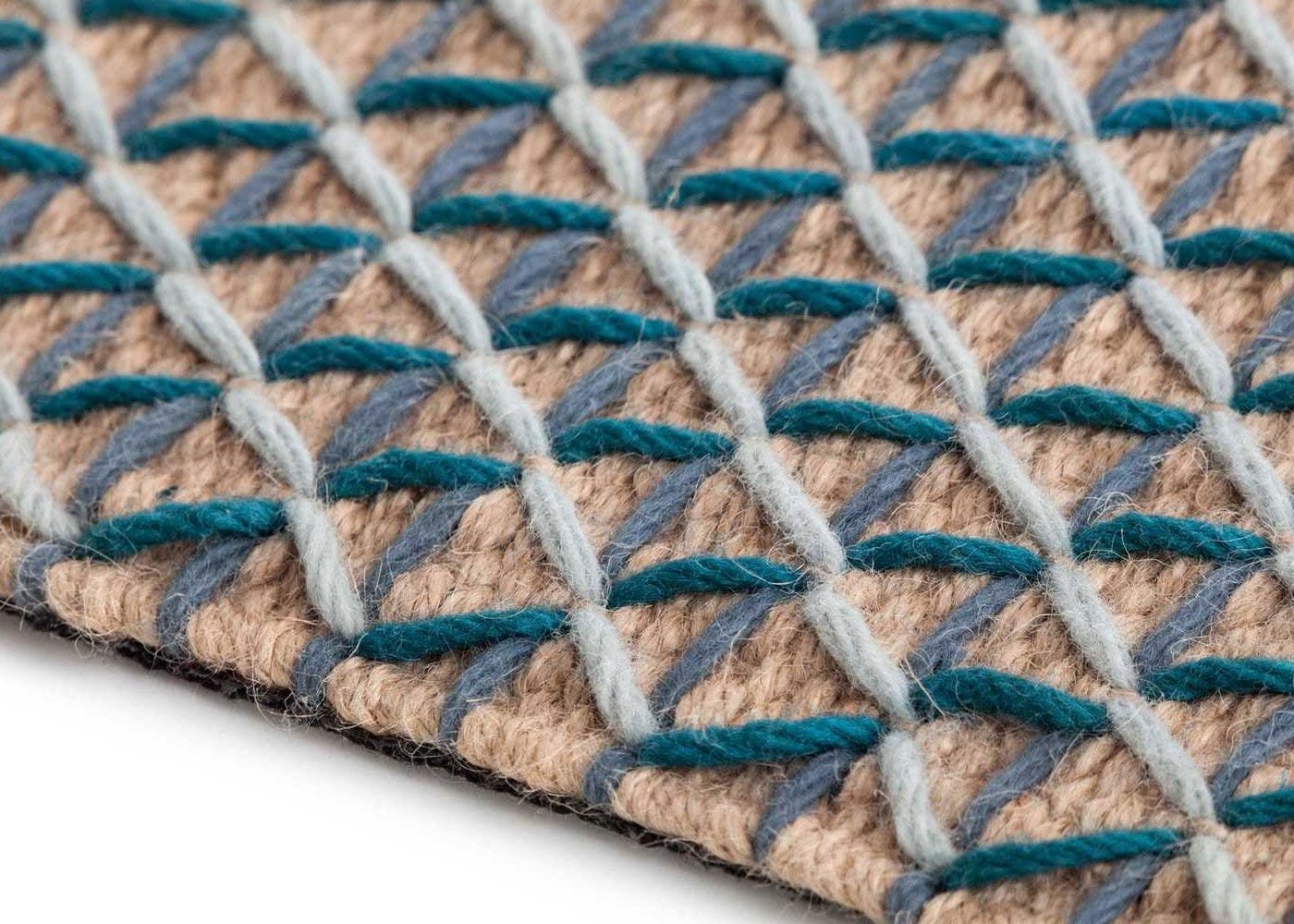 Taking inspiration from the traditional architecture of the Mediterranean, this rug features vertical and diagonal strands of colourful blue and green wool that sit upon a rustic jute base and combine to create a stunning pattern that will fit your interior.