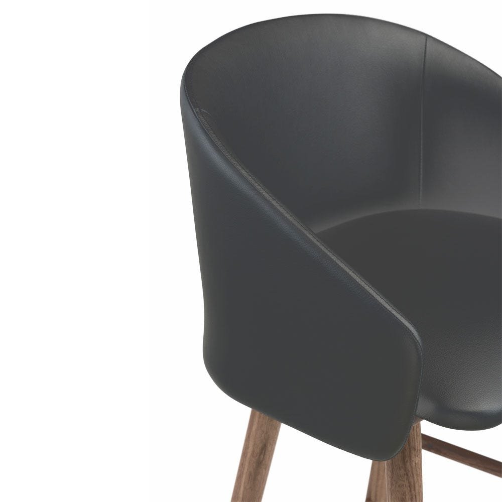 The 406 Saia Breakfast Bar Stool was carefully designed by Matthew Hilton for De La Espada with a focus on comfort and beauty. Its solid wood legs, textural upholstery and brushed brass cross bar will bring a design flourish to breakfast bars, high tables and kitchen islands alike.