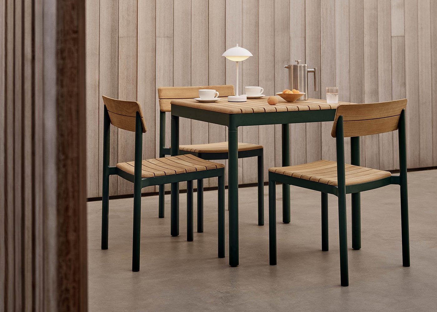 The Pelagus outdoor dining table embodies contemporary elegance with a light, graceful presence. Designed in collaboration with Note Design Studio, it seamlessly fits both urban and natural spaces. Featuring a solid teak slatted tabletop and a powder-coated aluminium or stainless steel frame, this compact yet versatile table comfortably seats two to four people. Built for outdoor living, its durable materials ensure lasting beauty, whether left to patinate or maintained with oil.