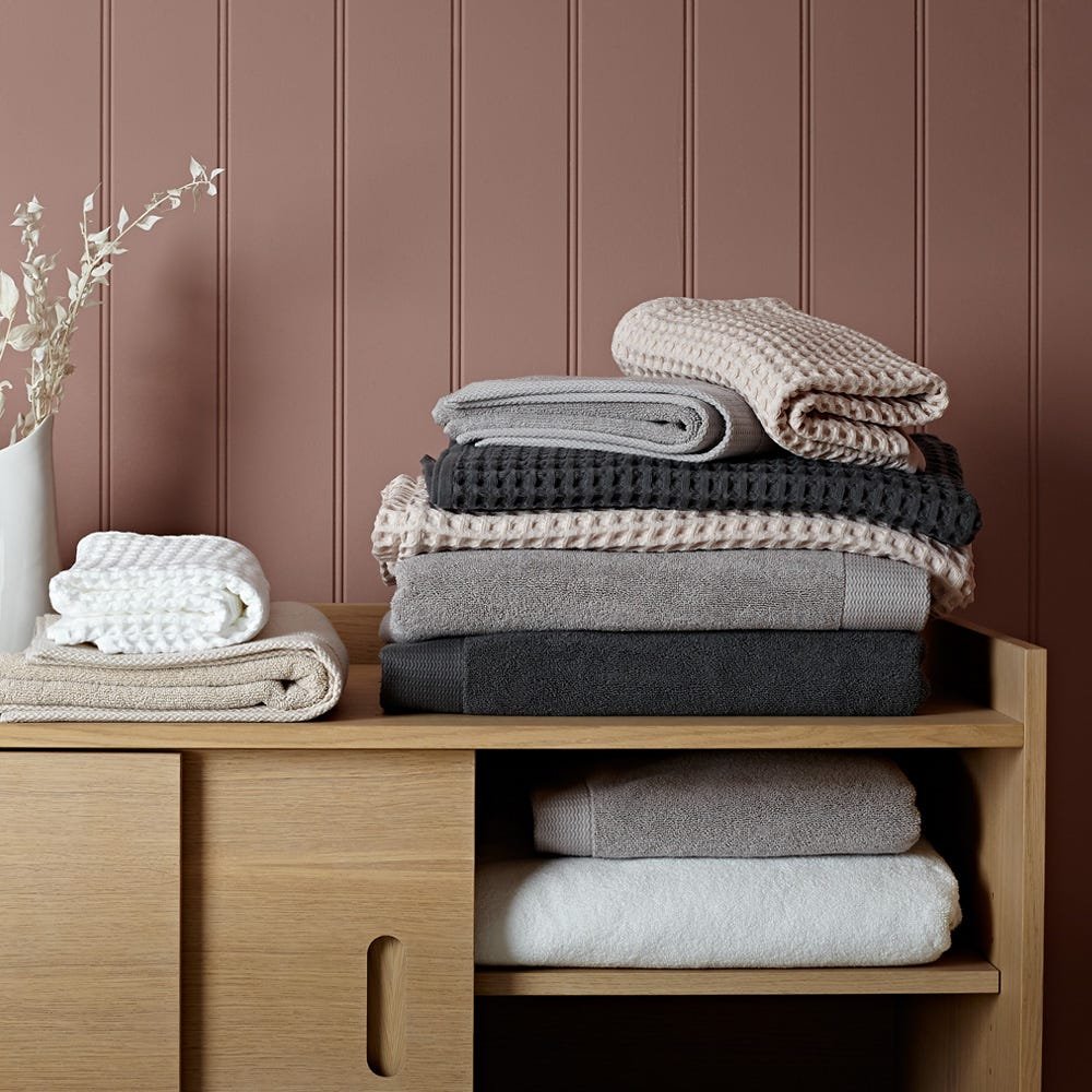 Our exclusive luxuriously soft towels are made with Turkish cotton. Turkish cotton is a long staple cotton like Egyptian cotton so the yarn is smooth yet thick, making these towels have excellent absorbency. Available in three sizes and three colourways to suit any bathroom.