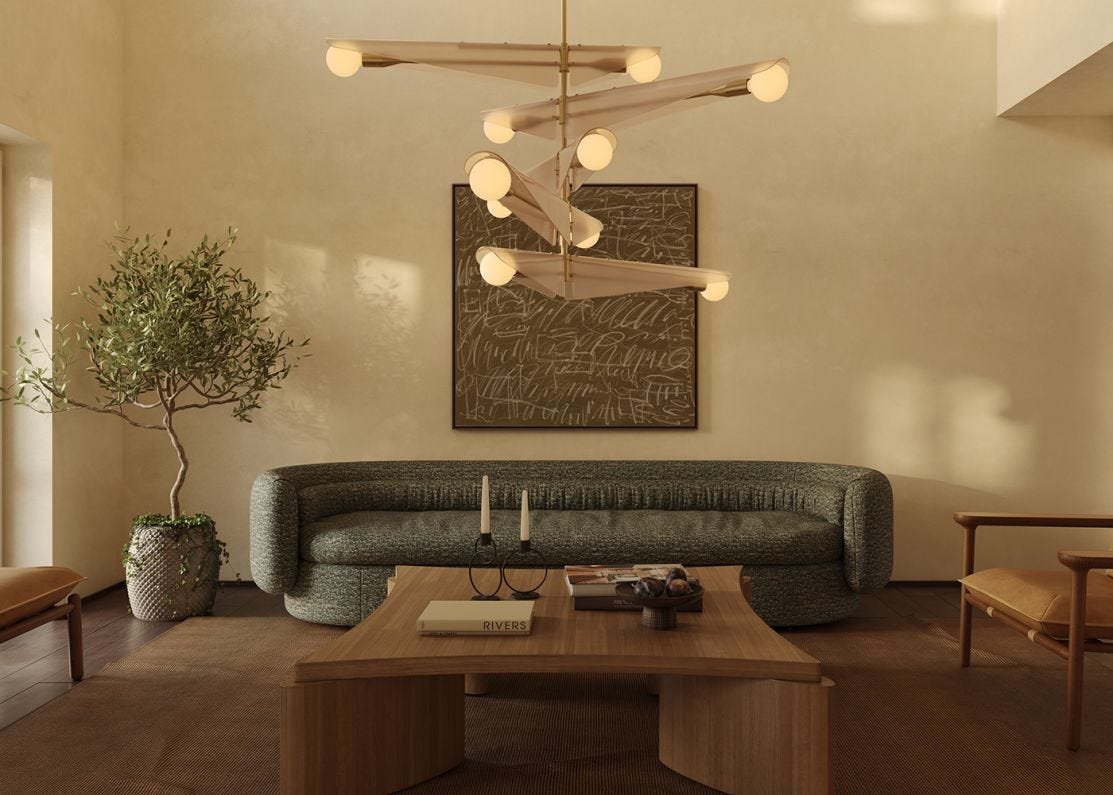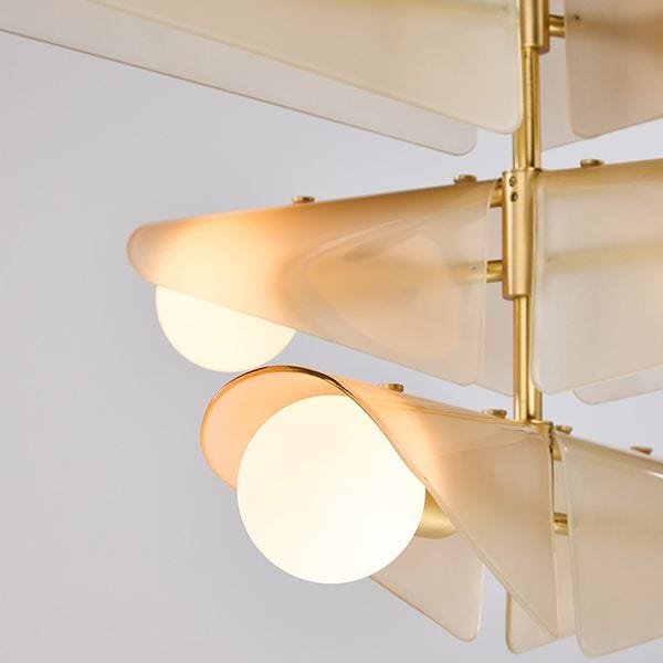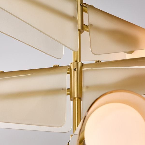 Inspired by the graceful descent of sycamore seedpods, our Sycamore Chandelier captures the natural beauty and elegance of these delicate seeds. The chandelier features glass wings that curve gently over a brushed solid brass frame, embodying the seed’s translucent quality and illuminating any space with a soft, warm glow. The design celebrates the rhythm of the seasons, reflecting the serene flights of sycamore seeds in spring and autumn.