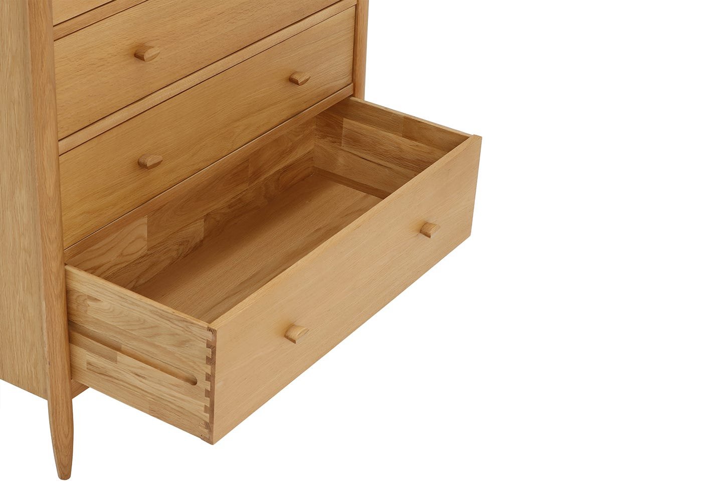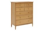 Teramo is a relaxed bedroom furniture collection crafted from pale oak in classic mid-century silhouettes. The 7-Drawer Wide Chest evokes Shaker-style simplicity, boasting clean lines, tapered legs and a symmetrical design. Suitable for modern and traditional interiors alike, the chest is coated in a clear matt lacquer to protect the timber and showcase the beauty of the pale oak. With three full-length drawers and four smaller ones at the top, Teramo provides ample storage space for all of your clothes.