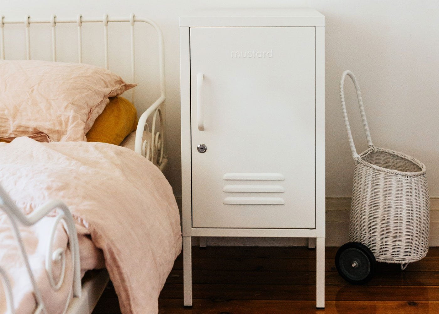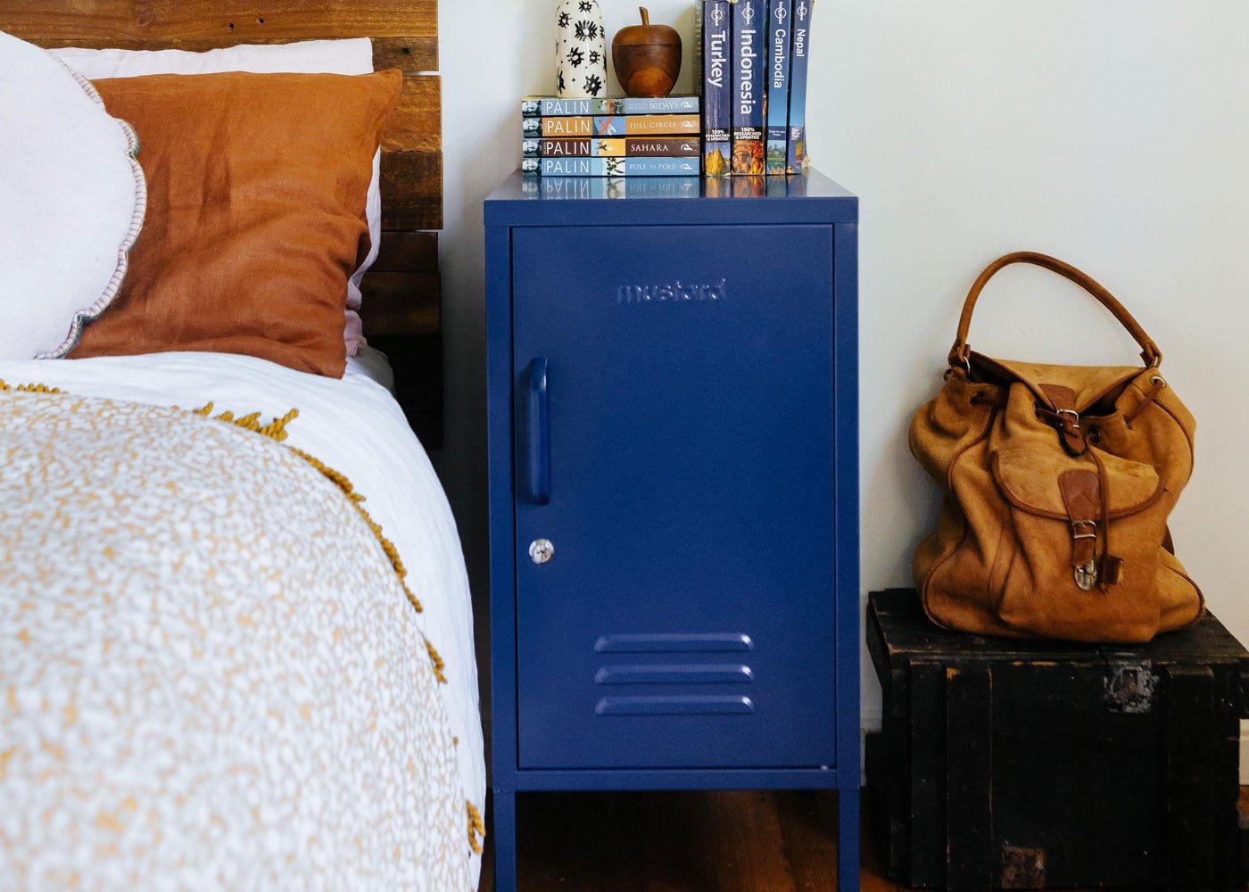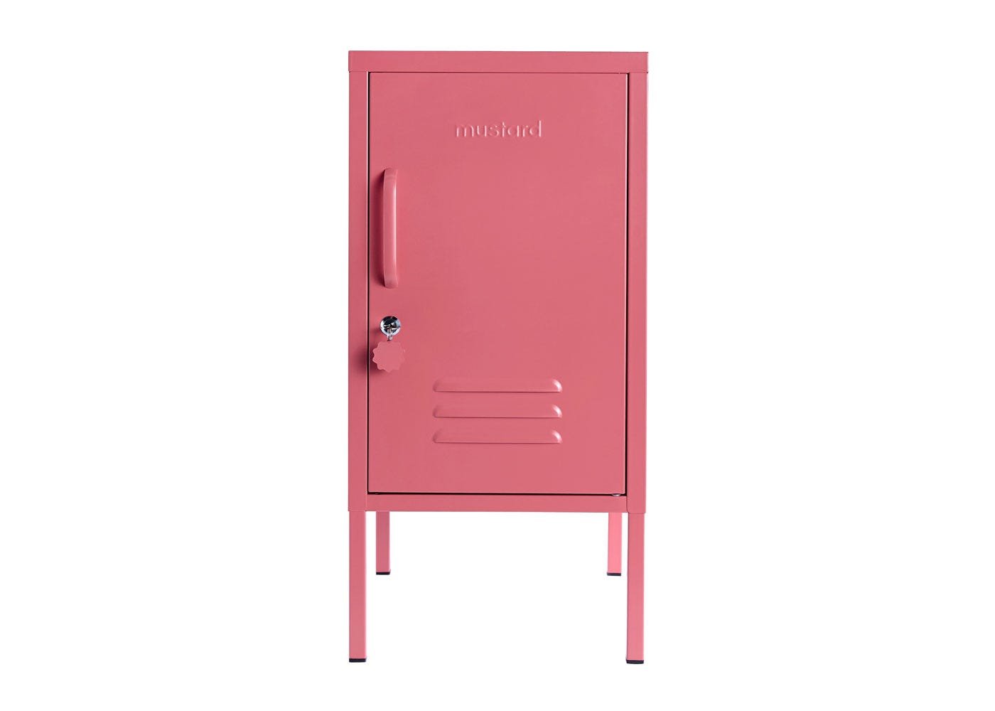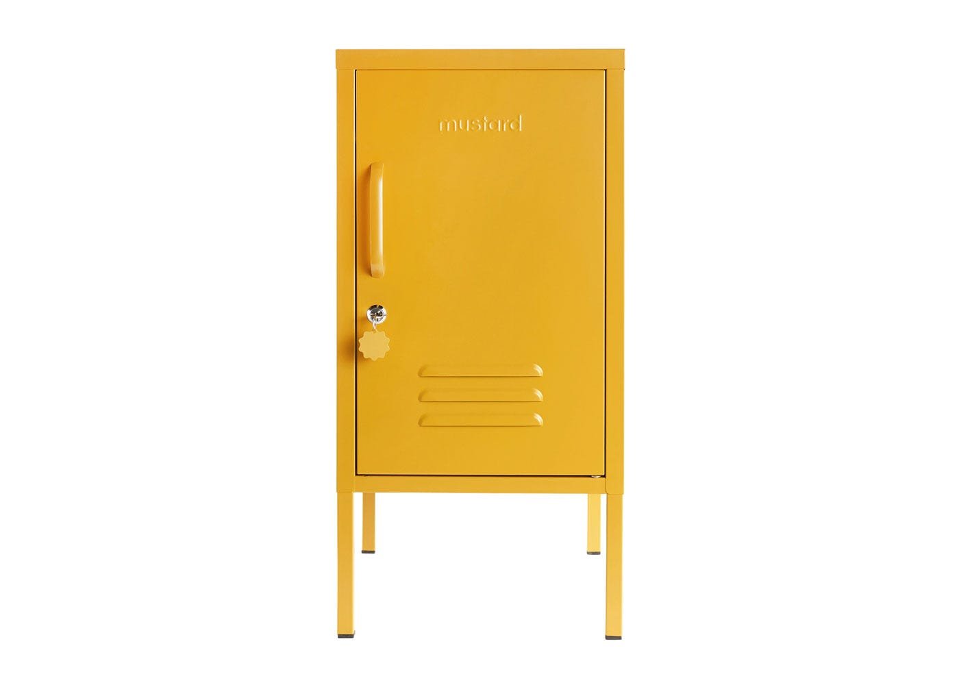 The Shorty to the Right locker makes itself at home tucked neatly next to your desk, snuggled up next to your lounge or sitting beside your bed. Our petite little locker might be small but there is loads of room inside. The door opens to the Right. Inside: Two adjustable shelves, one handy hook, cable hole, wall attachment points. Outside: Handle, lock, custom keyring, Mustard logo, air vents.