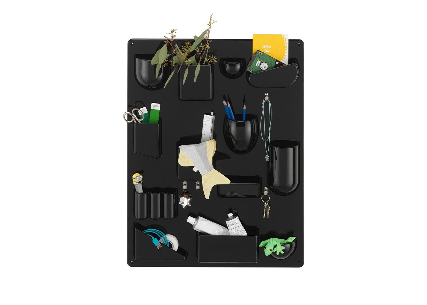 Manufactured entirely from robust recycled materials, featuring a range of different size containers, hooks and clips for stylish organisation.