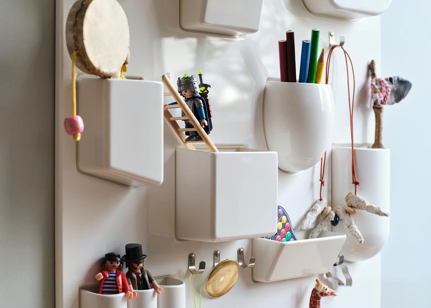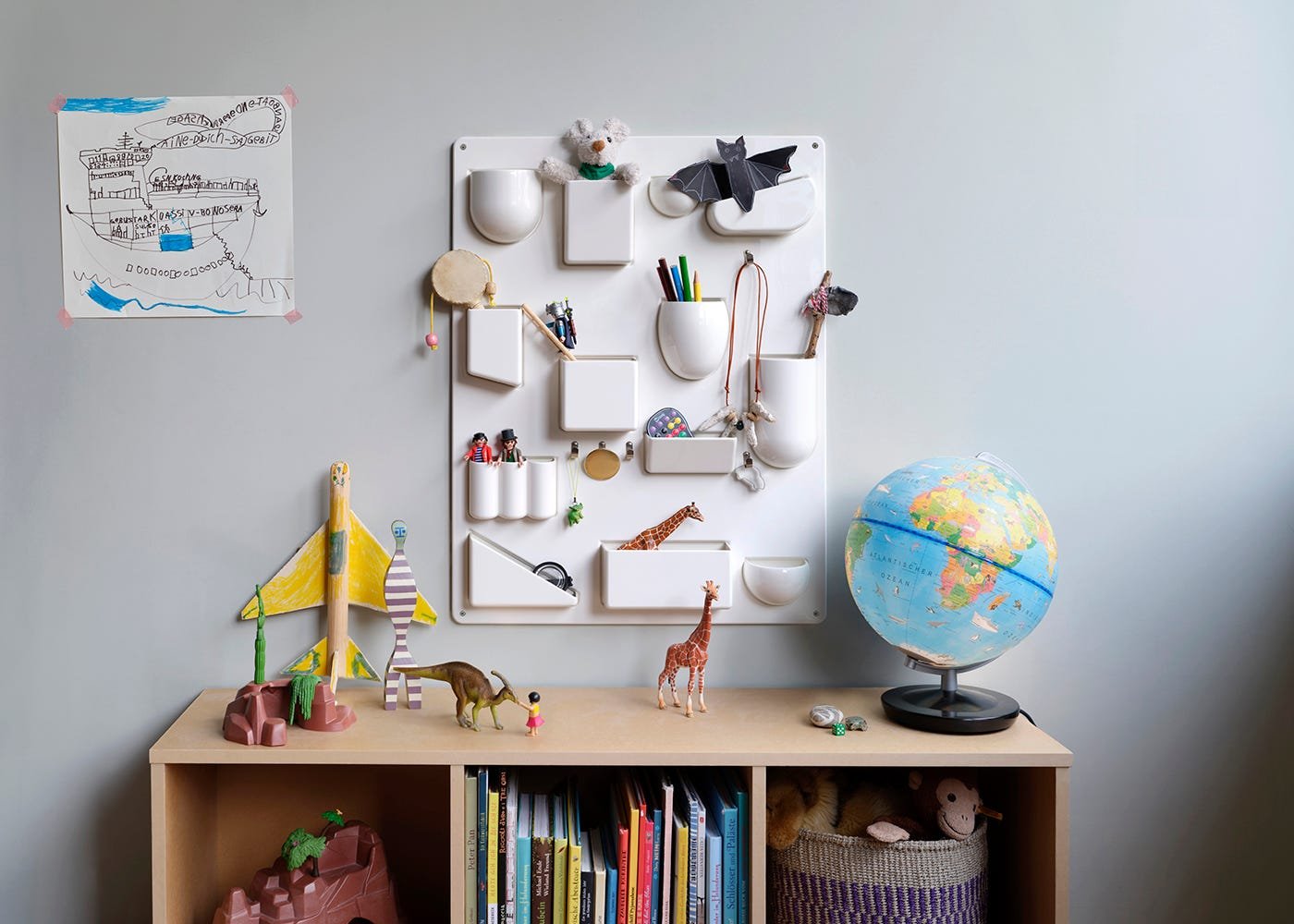 Uten.Silo RE is a storage system for use on the wall. Designed with containers of different shapes and sizes, metal hooks and clips, it brings order to offices, kitchens, workshops, bathrooms and children’s rooms. Uten.Silo RE is available in the original size from 1969 – Uten.Silo RE I – as well as in the smaller version issued in 1970 – Uten.Silo RE II.