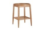 Features a non-removable tray-edge top and a lower slatted shelf for storage.